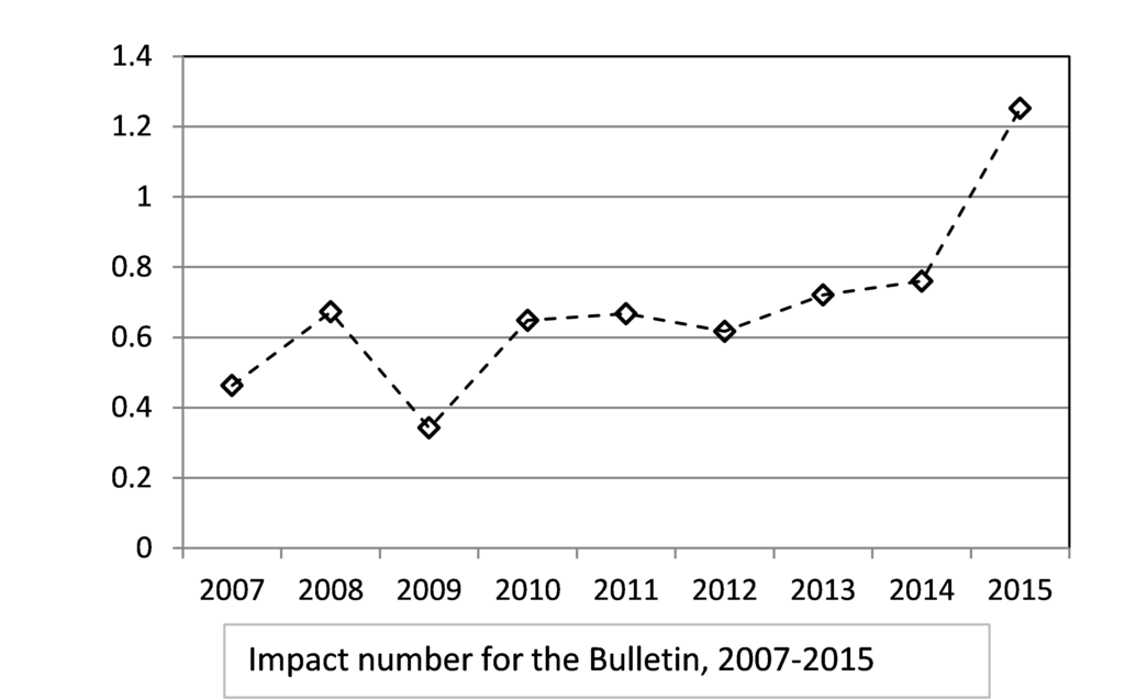 Fig. 5 shows changes to the Impact Factor for the Bulletin from 2007 to 2015. The figure for 2015 is 1.252, considerably higher than for 2014 and far and away the highest ever.