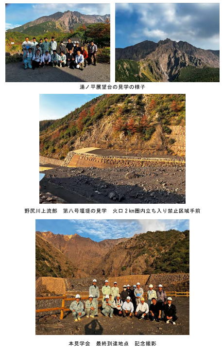 13:00~16:00 桜島ビジターセンター,火山防災センター 桜島砂防出張所管轄の野尻川上流部第八号堰堤の見学 16:45~17:30 桜島港⇒鹿児島港⇒鹿児島中央駅